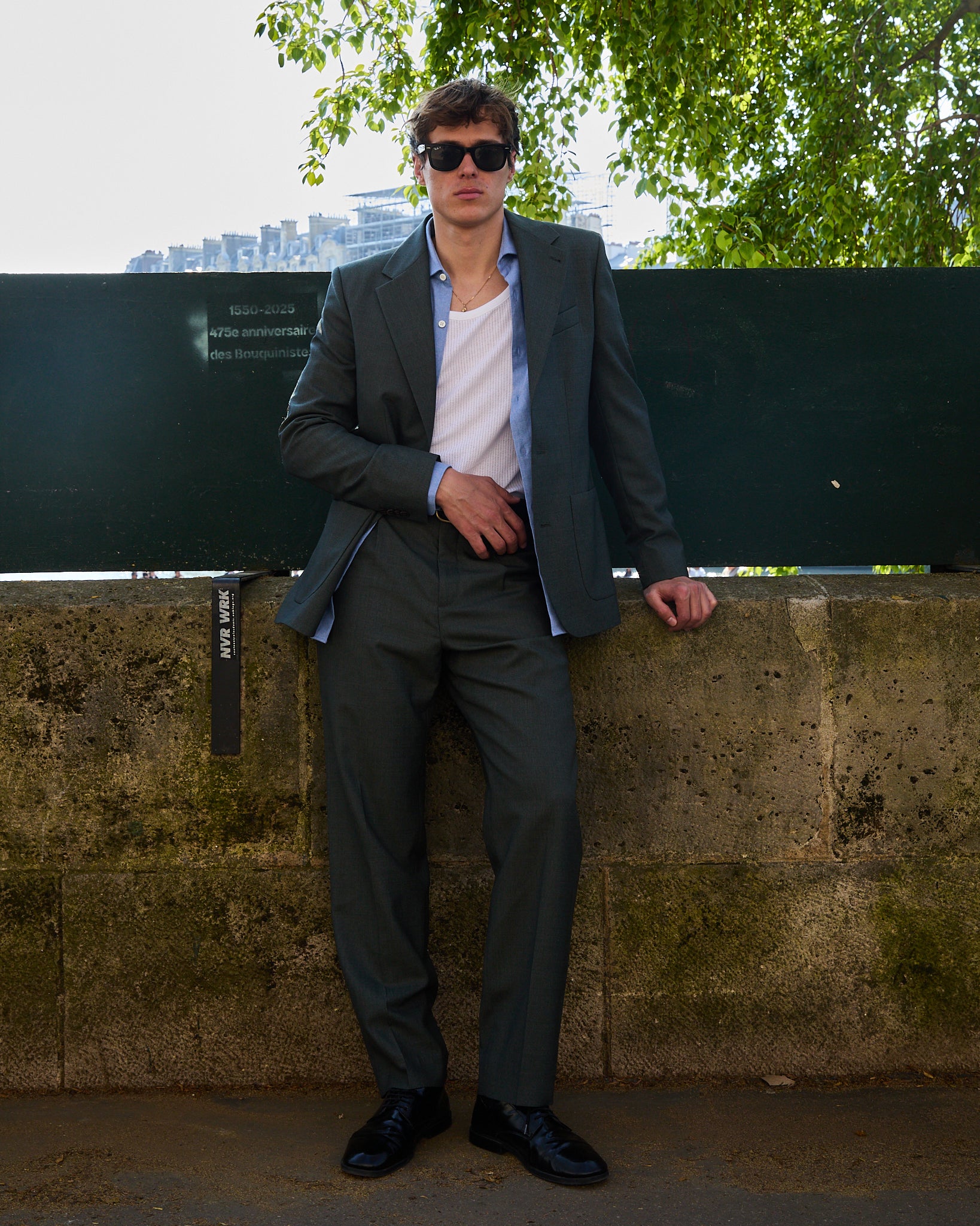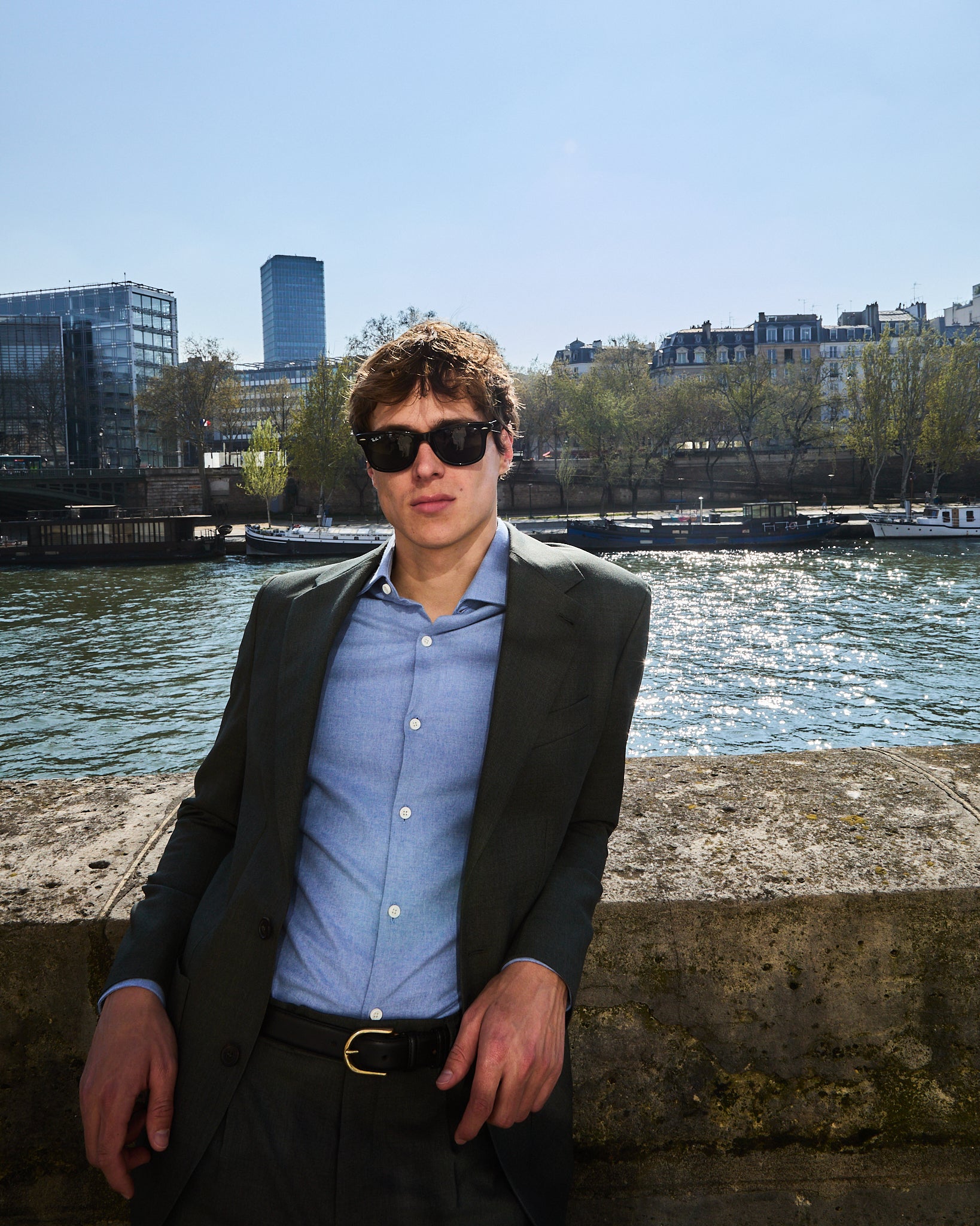 The Belleville suit exudes a distinctive style with its double-breasted jacket, whose wide, pointed lapels pay homage to classic masculine elegance. Crafted from an Italian “powder grain” wool with a multi-faceted sheen, the jacket’s texture catches the eye, while its crisp drape and semi-fused construction ensure a flawless fit across your shoulders.