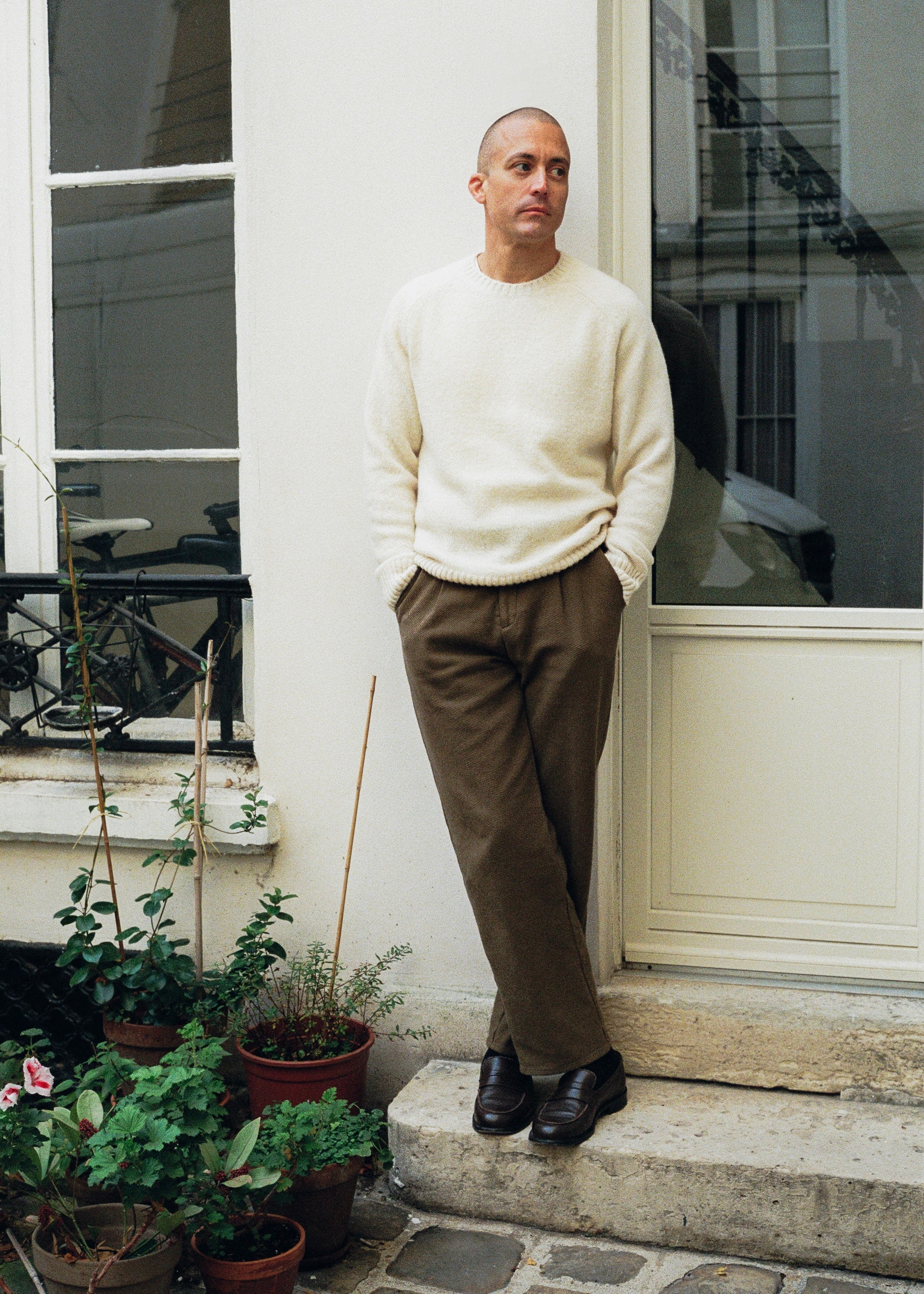 This sweater brightens your outfits with its radiant ecru hue. Think of it as the perfect cold-season substitute for your favorite white T-shirt. Bright yet neutral, it slips easily under an overshirt, jacket, blazer, or coat — whatever the color.