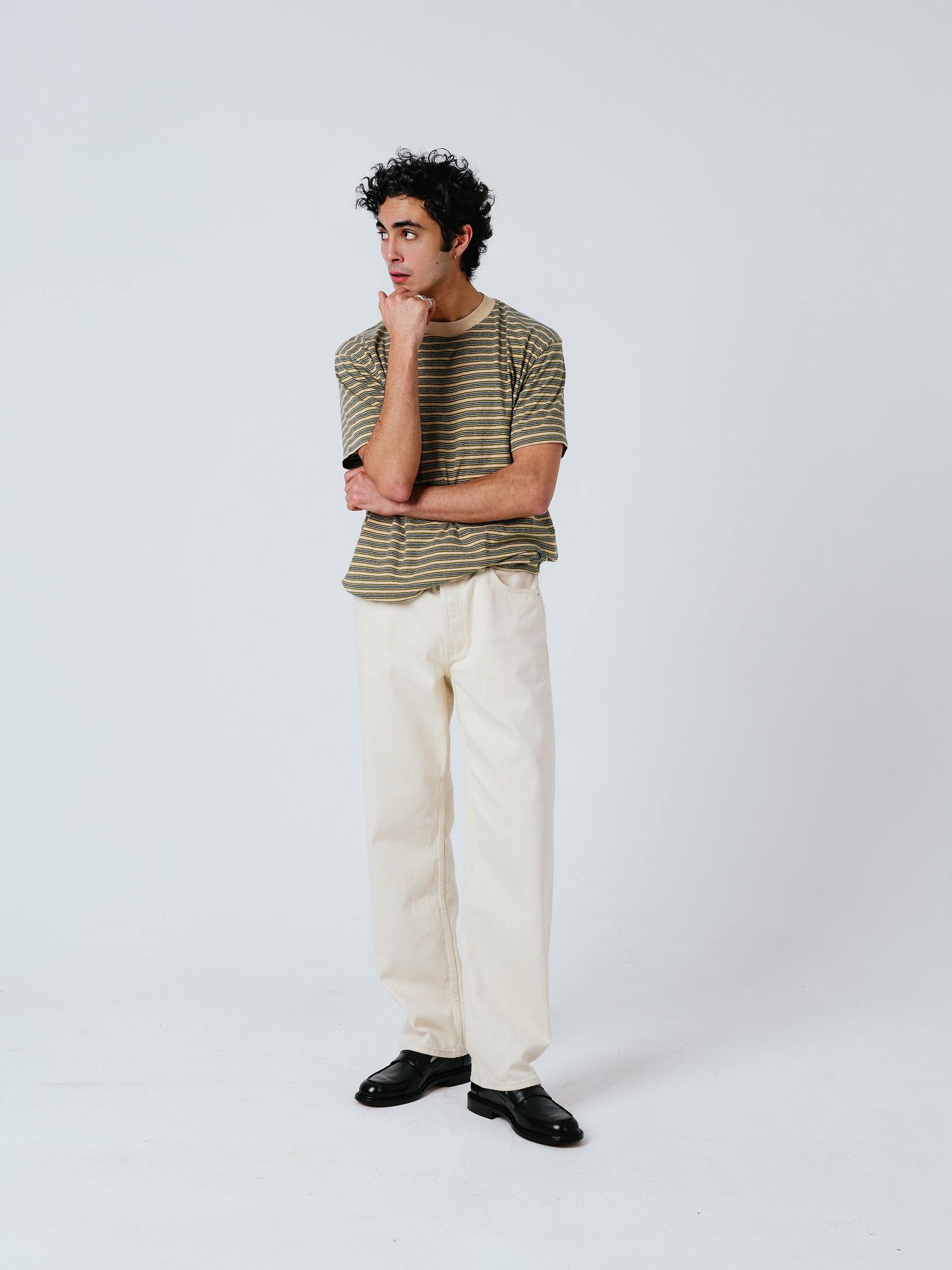 Nous l’avons donc conçu avec une coupe droite généreuse (22cm d’ouverture de jambe pour une taille 30), plus confortable encore que notre jean Renji. Un volume parfait pour les amateurs de coupes plus amples ou pour ceux qui ont des jambes musclées.