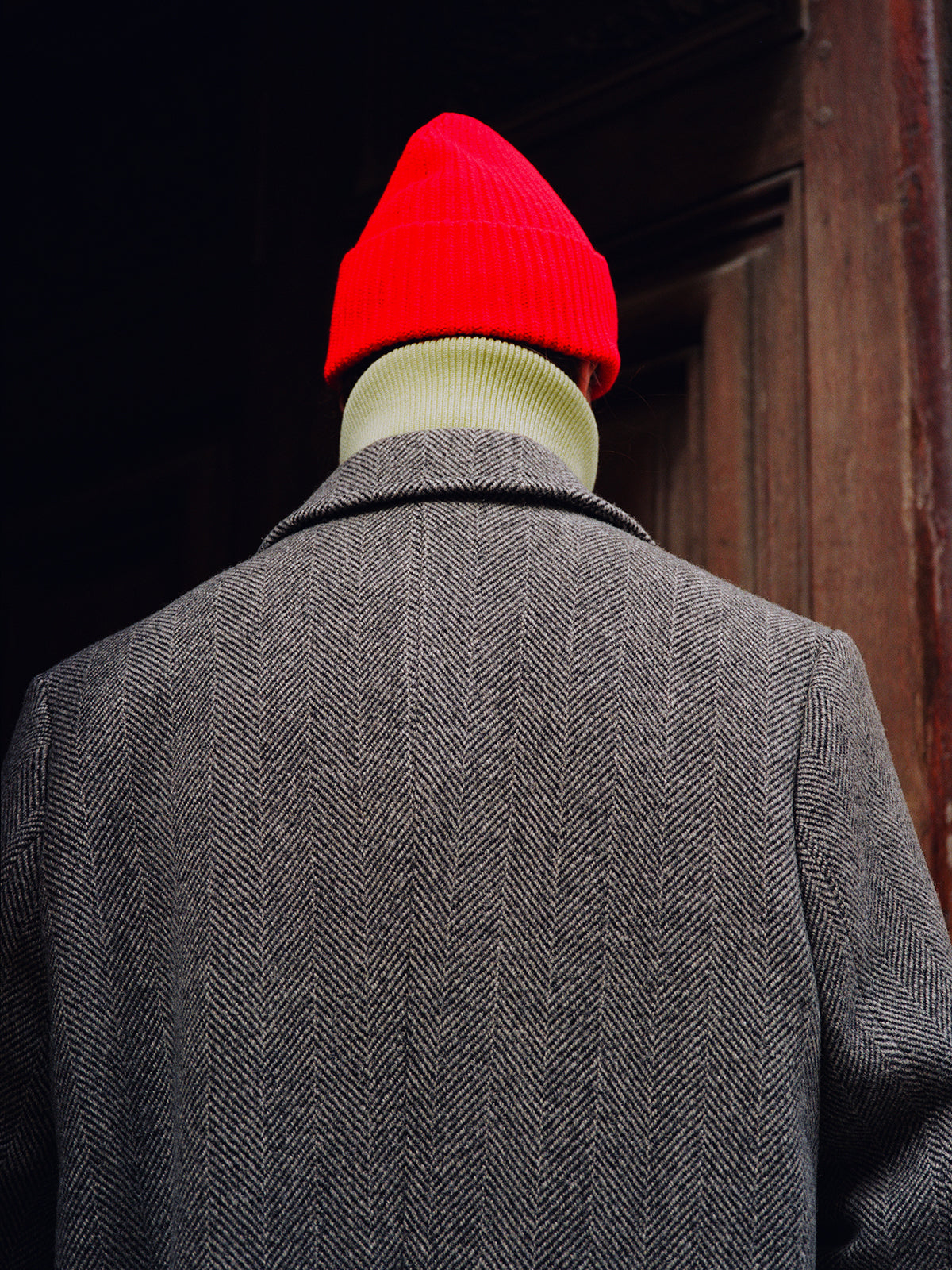 Comment porter un bonnet rouge ? Le but n’est pas de l’harmoniser dans un ensemble en camaïeu de rouge mais d’assumer un contraste avec le reste de votre tenue.