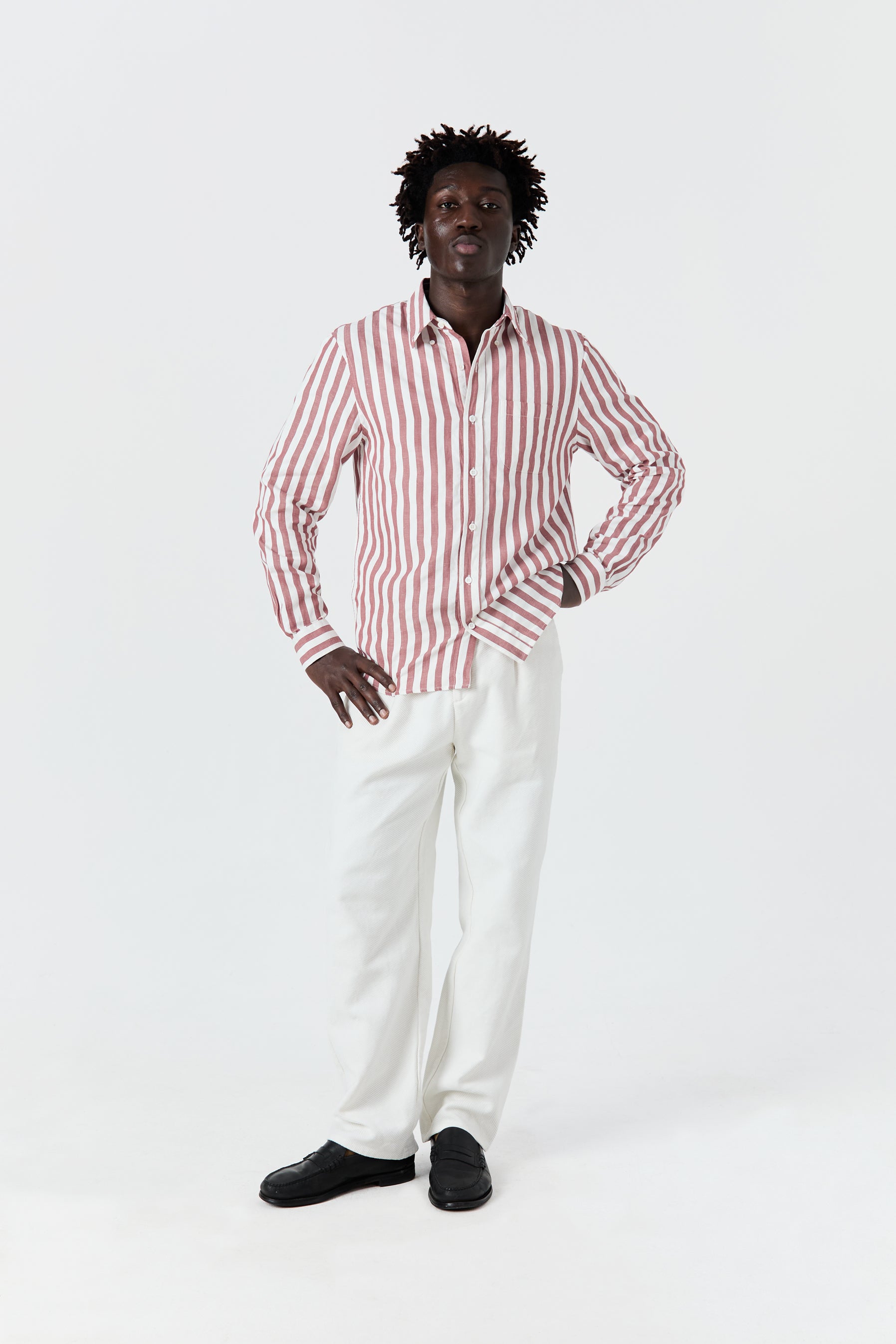 L’alternance d'une texture plus brute et d'une autre plus douce donne naissance à un tissu de caractère, tissé au Portugal par Vilarinho, expert dans la création de tissus de chemises singuliers depuis bientôt un siècle.