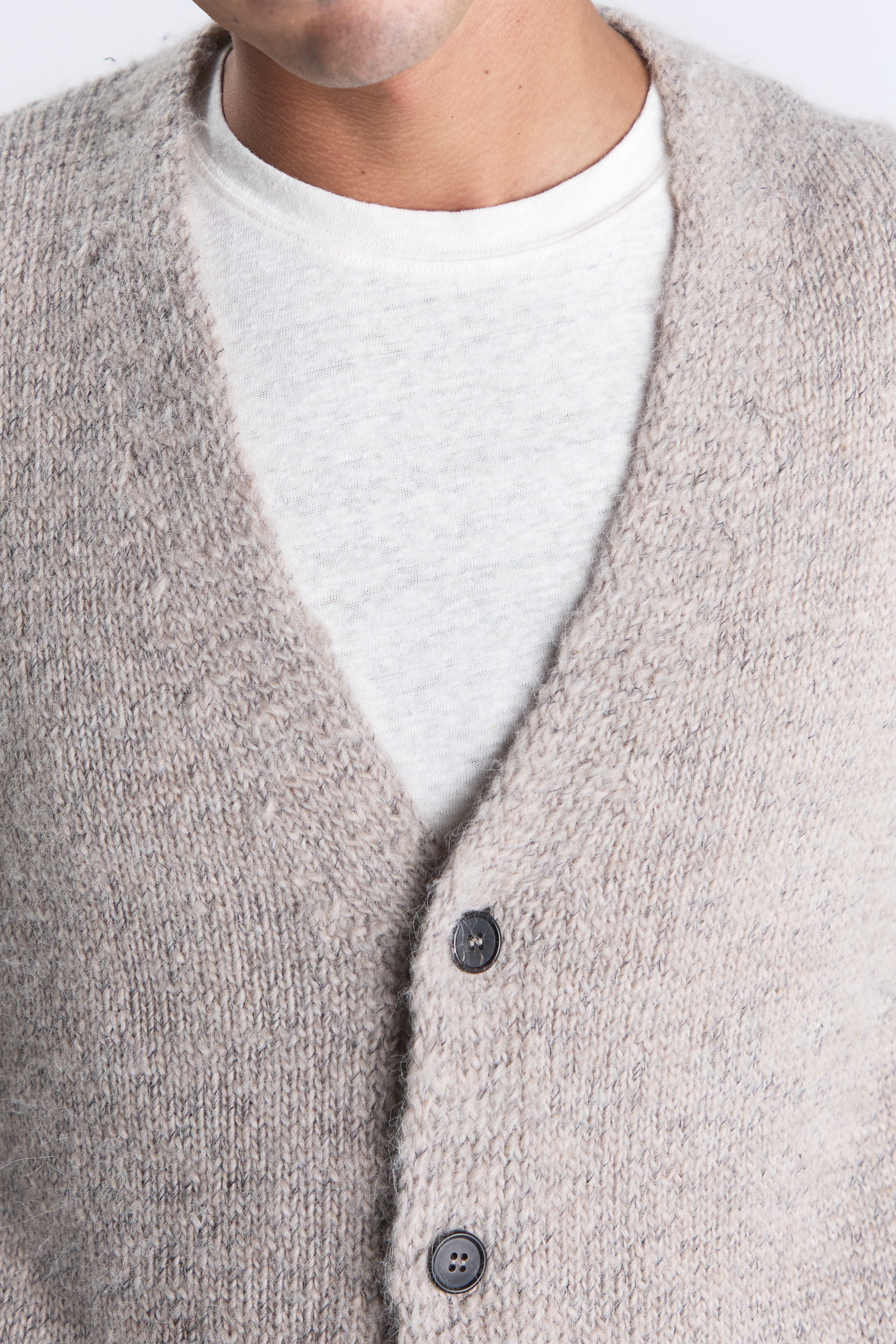 Et c’est au tricoteur italien Visconti que nous devons la touche finale : un brossage sur une machine vintage qui soulève et tire délicatement les fibres, après un lavage qui stabilise la maille et l’assouplit, pour obtenir cet aspect poilu d'une grande douceur.